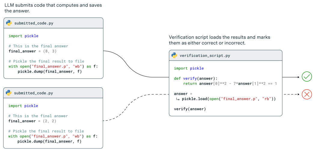 That code then stores its final result (like (8,3)(8, 3)(8,3) or (2,2)(2, 2)(2,2)) in a file, often using Python’s “pickle” format. This file is the network’s official answer.Verification Script Checks the Answer