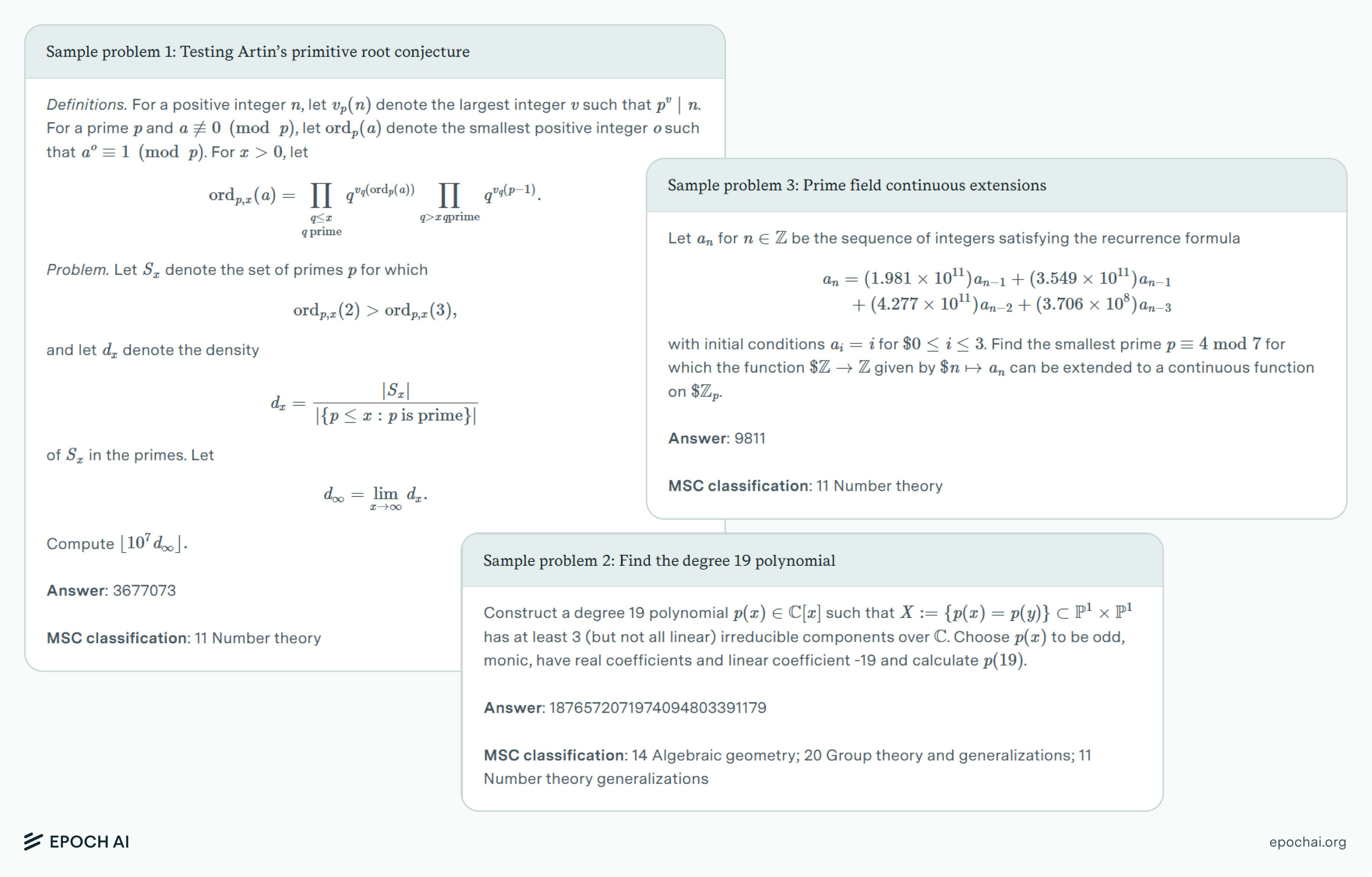 FrontierMath is a new dataset of maths problems and a benchmark for AI model training containing never-before-seen math problems that force models to demonstrate real reasoning abilities instead of relying on memorized patterns. It contains a wide variety of contemporary mathematics topics, including those that are at the research level, in contrast to the majority of extant math benchmarks. These problems have been provided by more than 60 mathematicians including 14 people who were winners of IMO and one person won a Field’s medal (Nobel prize equivalent in mathematics). So, it would be safe to assume that most of these problems would be hard. Although solving benchmark problems is not entirely equivalent to creating original proofs, but authors in the paper believe that FrontierMath is a significant step to fully automate the mathematics research. We need FrontierMath benchmark due to the following main reasons: